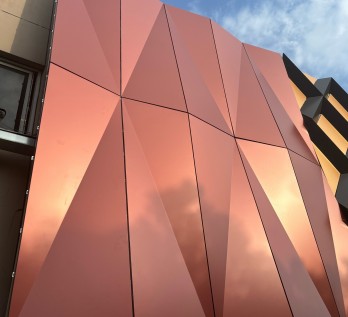鋁單板變形的表現(xiàn)形式多種多樣。有些鋁單板會出現(xiàn)局部的凹陷或凸起,就像原本平整的鏡面出現(xiàn)了坑洼,破壞了建筑表面的平滑感。在一些大型建筑的外立面上,這種局部變形會非常顯眼,嚴(yán)重影響建筑的外觀形象。還有些鋁單板會發(fā)生整體的彎曲或扭曲,使得原本整齊排列的鋁單板變得參差不齊,破壞了建筑的整體協(xié)調(diào)性。特別是在一些追求簡潔、流暢線條的現(xiàn)代建筑中,鋁單板的整體變形會讓建筑的設(shè)計美感大打折扣。